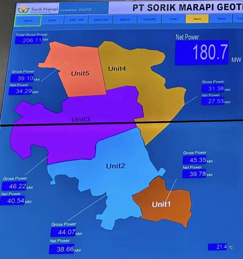 這是重要的里程碑事件,標(biāo)志著SMGP地?zé)犭娬具M(jìn)入到"200兆瓦俱樂部”。在全球地?zé)峤纾l(fā)電功率超過200兆瓦的電站(定義為發(fā)電設(shè)備生產(chǎn)的電力,外售電量還需要扣除電站運(yùn)行自耗功)寥寥無幾,SMGP地?zé)犭娬具@座采用開山擁有完全自主知識產(chǎn)權(quán)的模塊電站,勢將成為全球地?zé)峤绲摹懊餍恰保彩翘K門答臘最主要的地?zé)犭娬尽?/span>