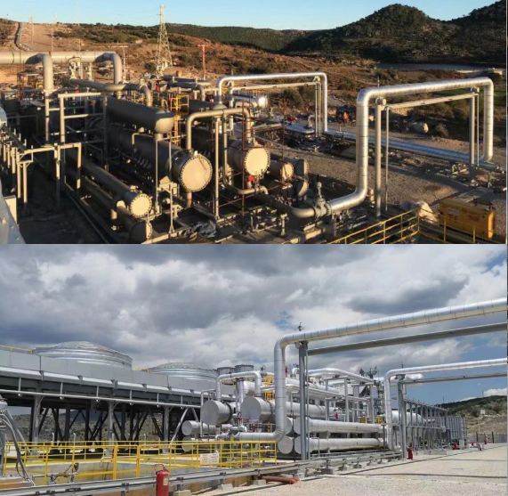 圖3:Transmark一期電站實(shí)景圖。土耳其第一座采用“混合冷”技術(shù)、該國(guó)為數(shù)不多零二氧化碳排放的地?zé)犭娬?/span>