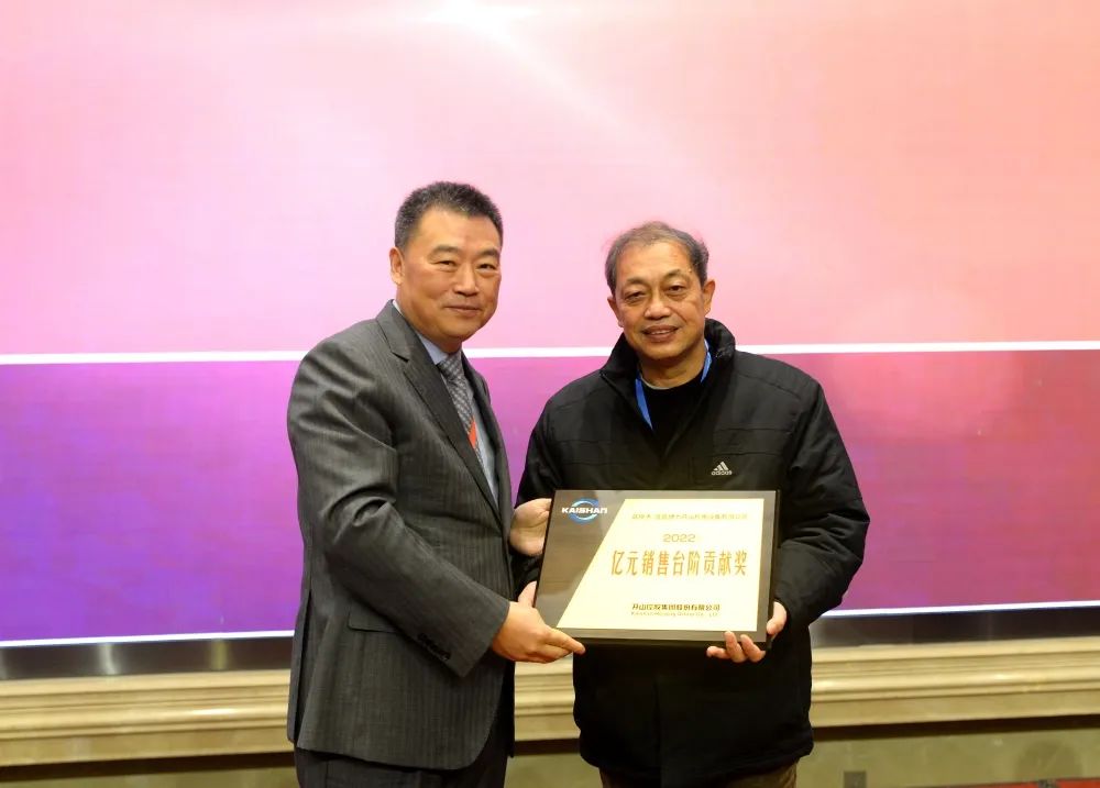會議還向23位優秀經銷商頒發獎牌。值得慶祝的是,2022年在較為困難的經營環境下,誕生了開山歷史上第一家年度銷售額過億的經銷單位:宜昌博力開山機電設備有限公司。
